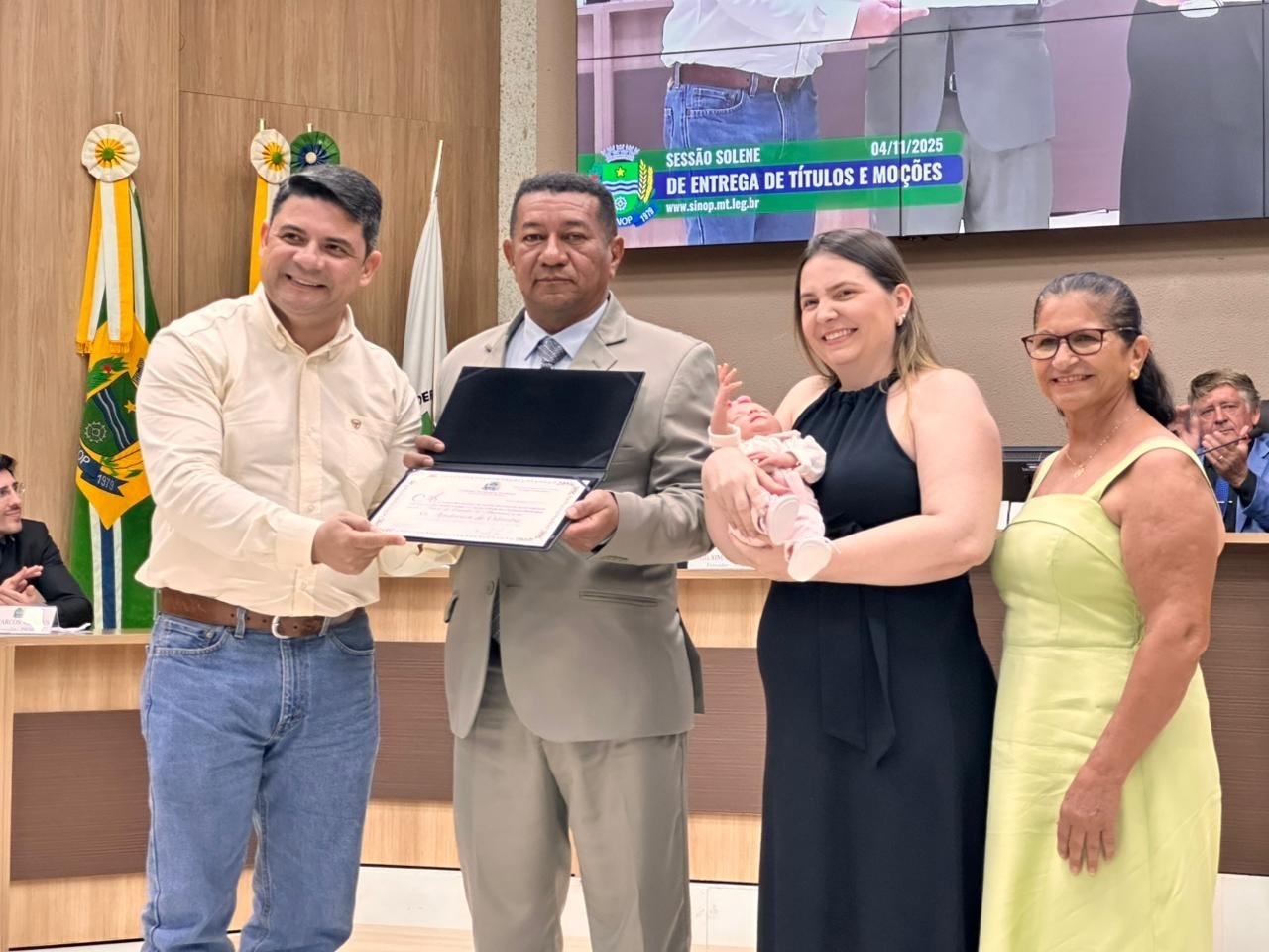 Anderson recebeu seu título de cidadão acompanhado de sua mãe, Josefa Francisco dos Santos, da esposa Ângela e sua filha recém-nascida, Aurora.